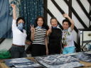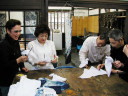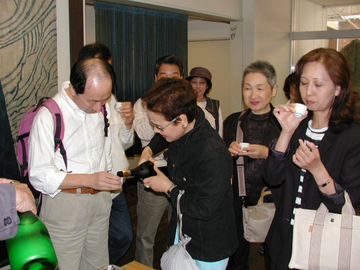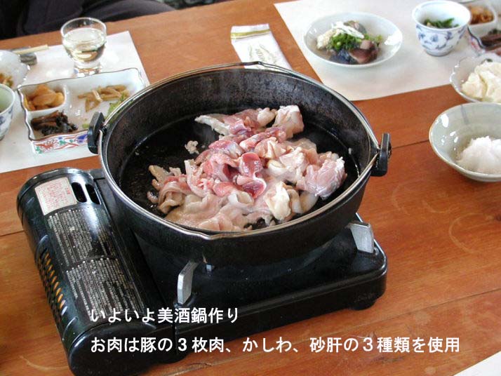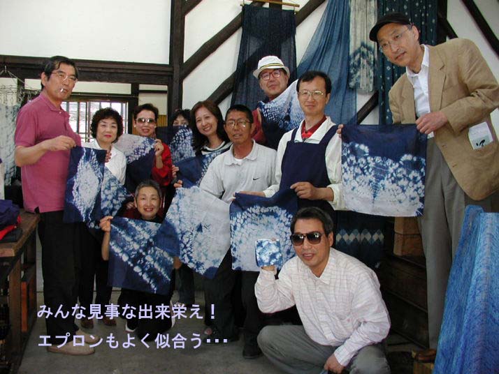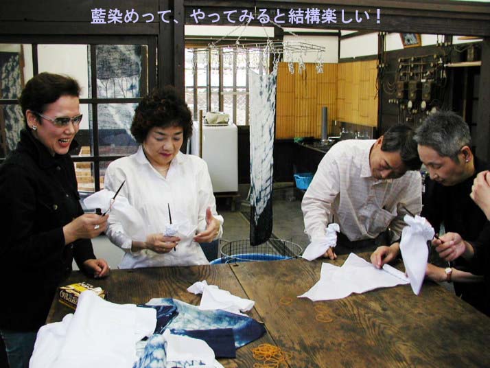 美味しいお酒がただで飲めて、藍染の実習もあり、お昼は美酒鍋といううれしいツアー。