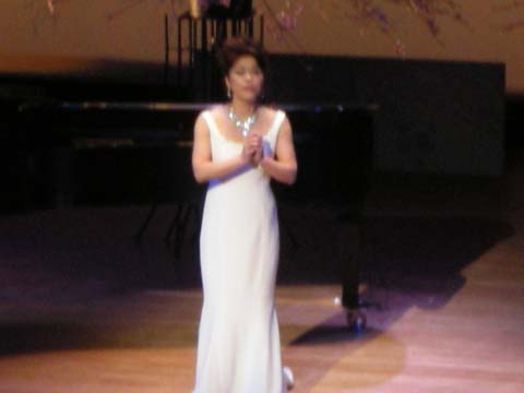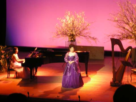 真っ白のドレスで最初は親しまれている曲「早春賦、里の秋」など。2部はガラッと変わって