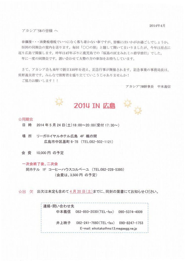 >> 2014 アカシア58同期会