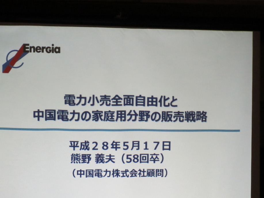「電力小売りの全面自由化について」 中国電力(株)顧問 熊野義夫