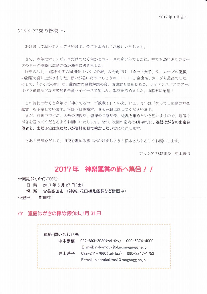 来年は卒業50周年ということで「驚きの企画」を検討中。それまでお元気で。