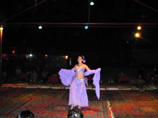 その後、砂漠の中のキャンプへ。夕食とベリーダンス。マトンが美味かった。日本で食べるのとは違い独特の臭いも無い。トルコで食べた時も美味しかった。香辛料に秘密があるのだろうか。ベリーダンスはイスラムの国で許されるのだろうかと言うほど肌の露出があるし。昔これを楽しんでいた王様は僧侶と権力を分かち合っていたのだろう。これくらい許さないと不満のはけ口も無かったのかも。