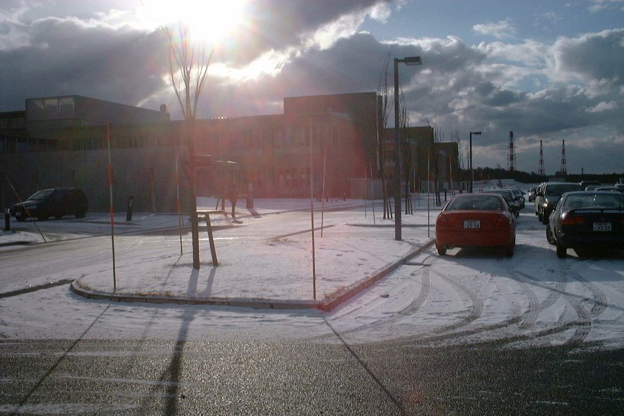 添付の写真はちょっと雪化粧した大学構内です。今後、時折定点観測してご紹介していきます。
