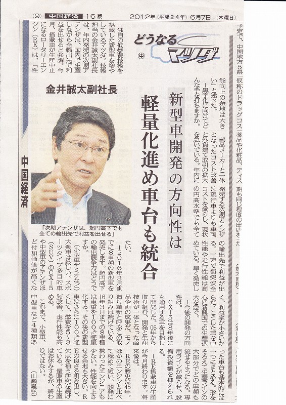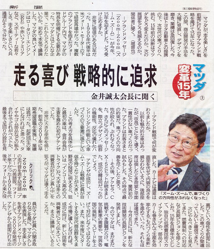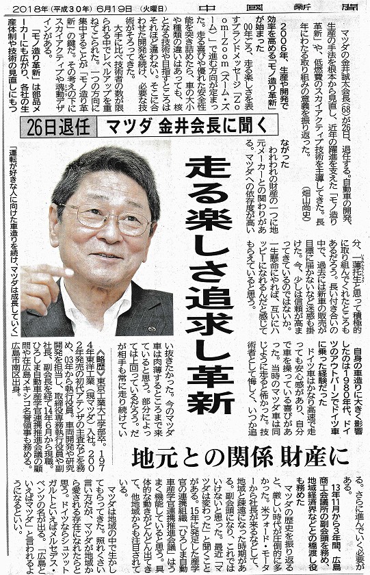 金井誠太君の新聞記事 「マツダ変革 15年」 中国新聞 2017.8.29