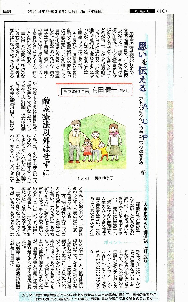 有田健一君の新聞記事 ACPのすすめ8 2014. 9.17