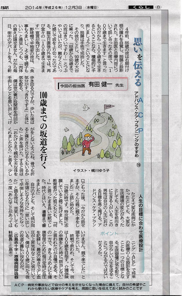 有田健一君の新聞記事 ACPのすすめ8 2014. 12.3